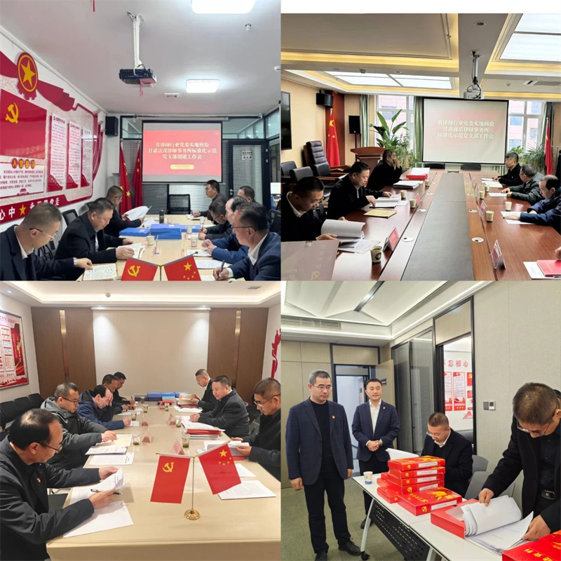 ▲实地查看天水市4家律所党支部创建工作工作组一行通过查阅台账资料、座谈交流、听取汇报等方式,先后对甘肃天秦律师事务所、甘肃鑫盾律师事务所2个标准化示范党支部进行“回头看”,对甘肃法茂律师事务所、甘肃永慧律师事务所等2个新申报标准化示范党支部和甘肃天秦律师事务所党支部品牌创建进行实地核验,就律师事务所党建与所建融合发展、党员律师教育、公益法律服务、“做党和人民满意的好律师”三年提升专项行动等工作进行了深入调研,现场指出存在的问题。工作组对天水市律师行业党委在全面加强行业党建、把牢行业发展方向和引领行业坚守法治为民等方面取得的成效,给予了充分肯定,认为天水市律师行业党建工作特色鲜明,各支部高度重视,组织生活规范,党建与业务工作结合紧密,协会运行高效有序,在服务经济社会高质量发展等方面取得成效。工作组强调,全市律师行业要以此次实地核验和调研督导为契机,坚定不移坚持党对律师行业的全面领导,把政治建设摆在首位,以党建引领律师行业健康发展;要聚焦经济社会发展需求,找准律师服务结合点,不断拓展业务领域;要以务实的举措,推动“做党和人民满意的好律师”三年提升专项行动落实见效;要深入推动党建与业务融合发展,精心创建一批特色鲜明、品牌响亮、经验可学、群众认可的标准化示范党支部,引领全市律师行业基层党组织奋勇争先,为全市经济社会高质量发展提供有力法治保障。