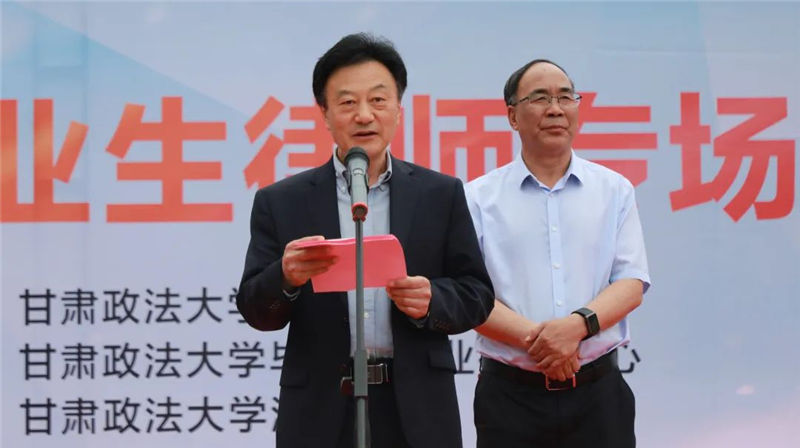李玉基校长在致辞中讲到,今天在这里隆重举行甘肃政法大学2022届毕业生律师专场招聘会,我谨代表学校向前来我校参加2022届毕业生律师专场招聘会的各位领导、各律师事务所的代表表示热烈的欢迎!律师行业是法治建设中不可或缺的生力军,人民律师是无上光荣的法律职业,在实现法治中国的蓝图中,律师大有可为,希望更多的甘法大学子踊跃加盟律师行业,用毕生的精力践行法治之道。同时,期待参加本次招聘会的所有律师事务所都能招到称心如意的人才,真诚地祝愿2022届毕业生都能高质量就业。