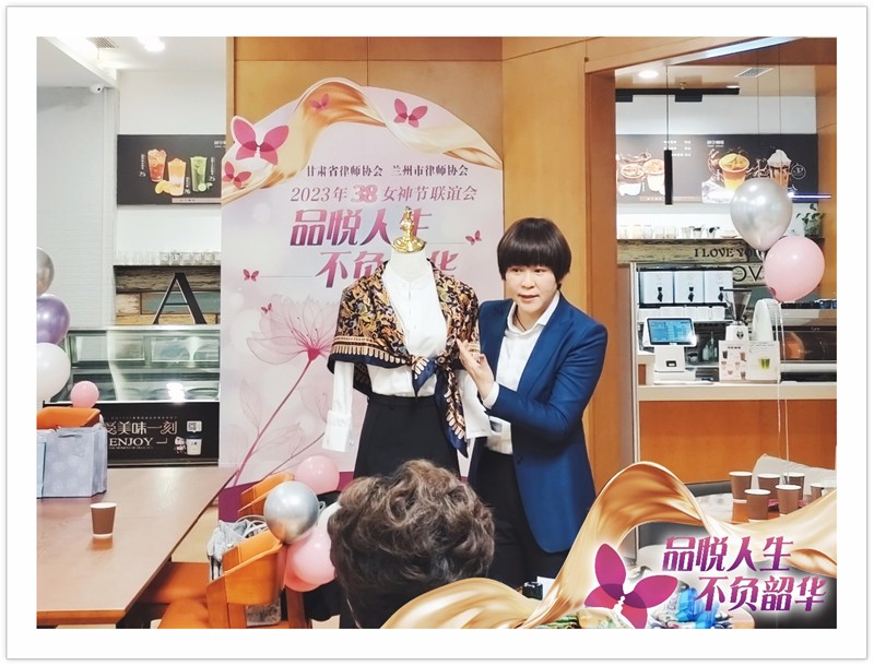 省市律协女律师工作委员会为在场的每一位女律师精心准备了一条丝巾作为节日礼物,并邀请量品服装设计师孙健进行《丝巾的巧妙搭配》授课。女性日常使用的丝巾在孙健老师的巧妙搭配装饰下,化身为提升形象、丰富色彩、增加女性魅力的“神器”。活动现场氛围轻松有趣,大家全程参与热情极高,充分展现了女律师积极向上、健康文明的精神风貌和对美好生活的热爱与向往。