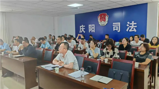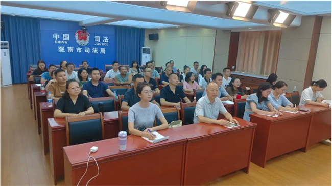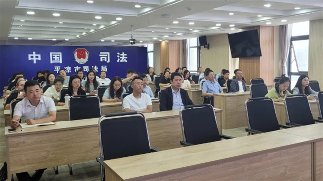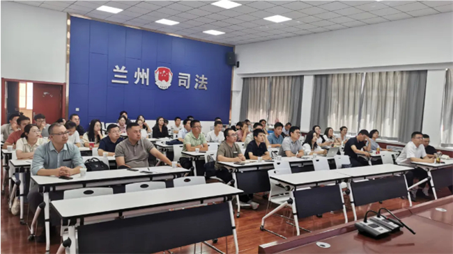 省律师协会秘书长朱鹏彦参加开班仪式。培训班以视频的方式开至各县区,在兰州设主会场,全省各市州、县区设分会场,全省专职律师、公司公职律师约2100人参加培训。