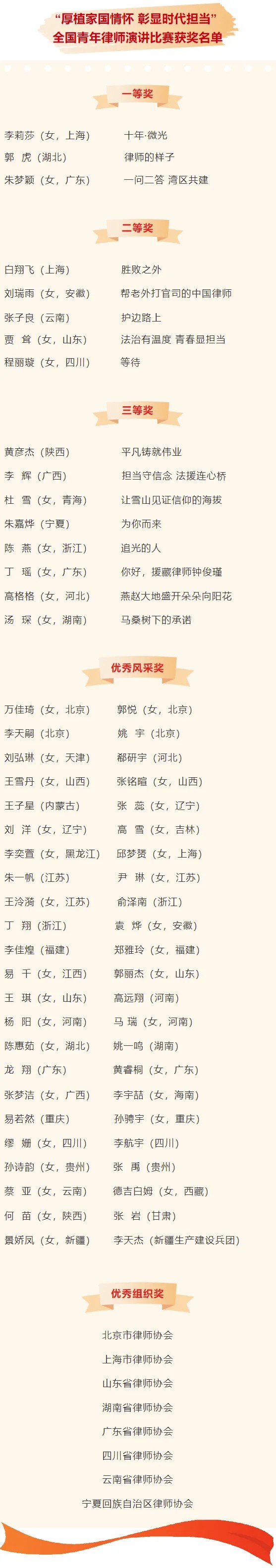 全国律协:全国青年律师演讲比赛获奖名单