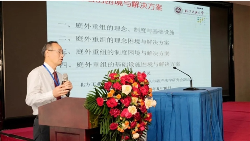 研讨会主题演讲环节,最高人民法院审判委员会原副部级专委委员、二级大法官杜万华以《促进破产保护法治建设,推动我国民营经济健康发展》为题,深入剖析破产保护法治建设对民营经济发展的重要意义;北方工业大学教授、北京市破产法学会副会长王斐民则聚焦《庭外重组的困境与解决方案》,为庭外重组实务难题提供思路;中国人民大学法学院教授、破产法研究中心主任、北京市破产法学会名誉会长王欣新,结合参与《企业破产法》起草与修改的经验,以《企业破产重整制度的立法修改完善问题》为题作主题分享;北京市炜衡律师事务所高级合伙人、炜衡全国破产与重组委员会第一届执行主任尹正友则从《公司法》视角出发,解读《〈公司法〉视域下的破产重组实务问题》。