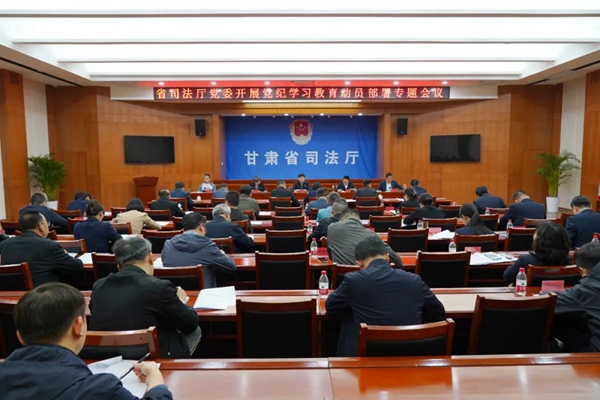 4月15日,甘肃省司法厅党委召开扩大会议,专题研究部署厅系统党纪学习教育工作,厅党委书记、厅长谢又生主持会议并讲话。