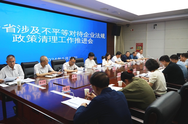5月24日,甘肃省委依法治省办召开全省涉及不平等对待企业法规政策清理工作推进会议,深入学习贯彻习近平总书记关于保护和促进公平竞争重要指示精神,全面贯彻落实中央、省委关于涉及不平等对待企业法规政策清理工作的决策部署和工作安排,分析清理工作存在的问题,梳理总结前一阶段工作进展,对进一步全面有序、扎实稳妥开展清理工作进行再安排再部署。