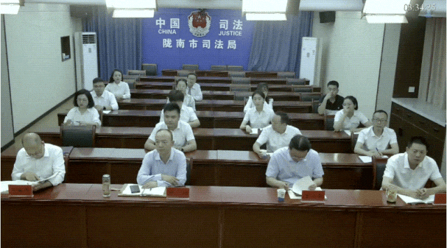 会议以视频形式召开,厅二级巡视员、二级警务专员,省委依法治省办秘书处负责人、驻厅纪检监察组副组长、厅机关各局处室主要负责人,省监狱管理局和省戒毒管理局班子成员,省律师、公证、司法鉴定、人民调解协会负责人在主会场参加;市县两级司法局、兰州新区民政司法和社会保障局、甘肃矿区司法局领导班子和中层以上干部,省监狱管理局、省戒毒管理局以及各监狱、强制隔离戒毒所中层以上干部在分会场参会;各乡镇、街道司法所所长在县(市、区)司法局分会场参会。