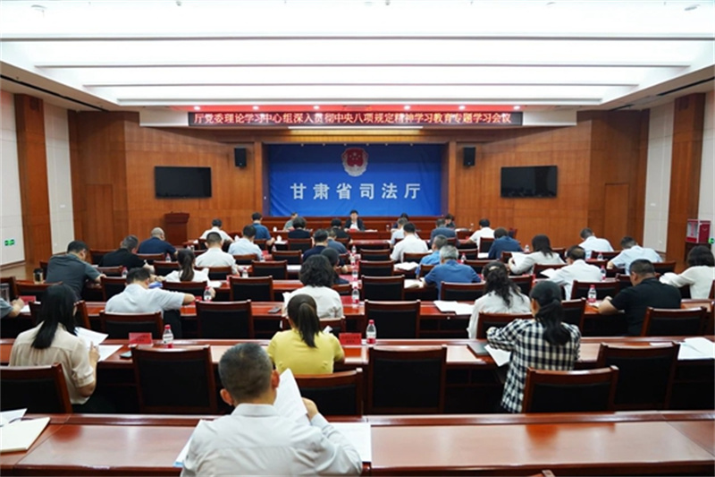 6月11日,省司法厅党委召开理论学习中心组深入贯彻中央八项规定精神学习教育专题学习会议,认真学习习近平总书记关于加强党的作风建设的重要论述有关内容,传达学习中央、省上关于集中整治违规吃喝有关文件精神以及严重违反中央八项规定典型案例通报,对厅系统集中整治违规吃喝进行安排部署。厅党委书记、厅长谢又生主持会议并讲话,厅二级巡视员、厅机关相关处室负责人等5名同志作研讨交流。