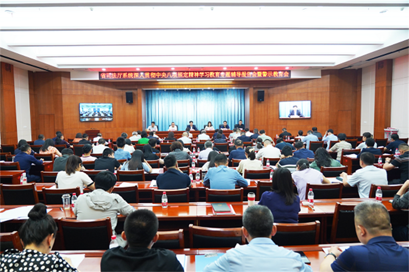 6月5日,省司法厅召开深入贯彻中央八项规定精神学习教育专题辅导报告会暨警示教育会。会议传达学习了习近平总书记关于加强党的作风建设的重要论述精神,传达学习了省委警示教育会精神,通报了相关典型案例,集体观看了警示教育片。省纪委监委七室主任魏薇以《锲而不舍贯彻落实中央八项规定精神 一严到底纠治“四风”》为题作了专题辅导。厅党委书记、厅长谢又生主持会议并讲话。