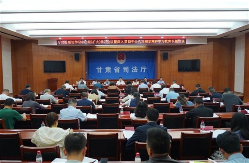 7月4日,省司法厅党委召开理论学习中心组(扩大)学习会议暨深入贯彻中央八项规定精神学习教育专题党课,认真学习习近平总书记在中共中央政治局第二十一次集体学习时的重要讲话精神,传达学习中央、省级层面学习教育工作专班有关文件精神和典型案例,厅机关相关处室负责人作研讨交流。省委依法治省办副主任,厅党委书记、厅长谢又生讲授学习教育专题党课。