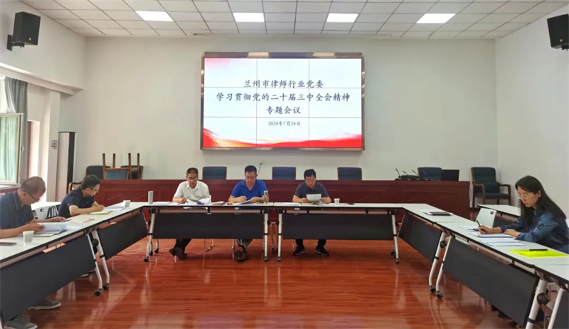 7月24日,兰州市律师行业党委召开专题会议,传达学习党的二十届三中全会精神,研究部署律师行业贯彻落实工作。市司法局党组成员、副局长、市律师行业党委书记苏泽云主持会议并讲话,市律师行业党委委员围绕学习贯彻全会精神作交流发言。