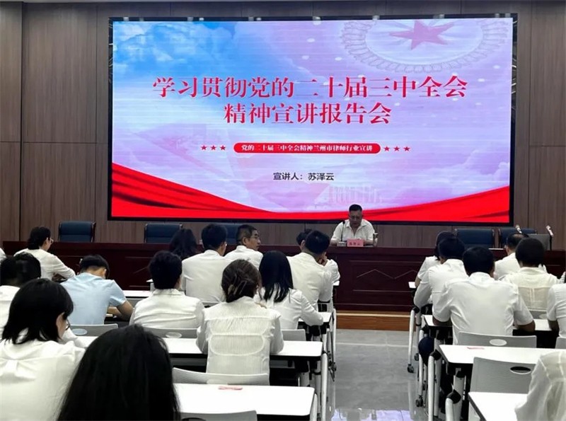 8月29日,兰州市律师行业党委举办学习贯彻党的二十届三中全会精神宣讲报告会,市司法局党组成员、副局长、市律师行业党委书记苏泽云作宣讲报告,市律师行业党委专职副书记杜保录主持,市律师行业党委班子成员、各市属律师事务所党组织书记共计80余人参加报告会。