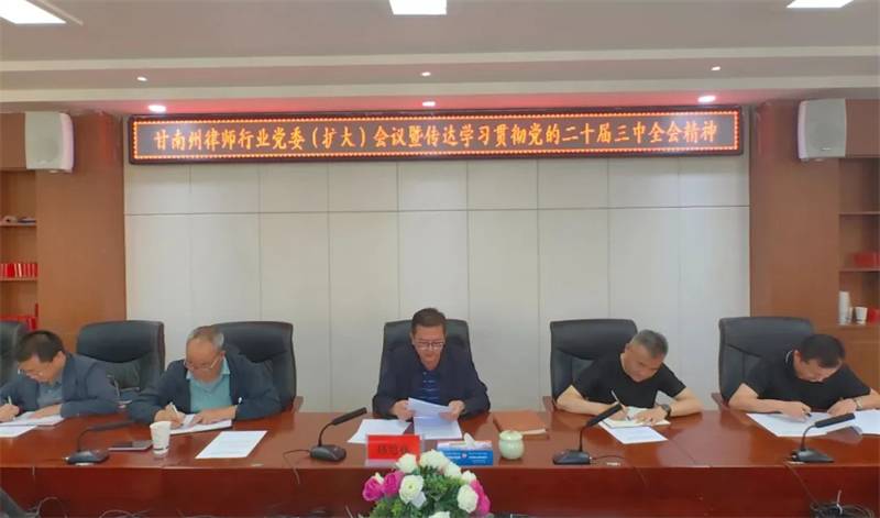 7月31日,甘南州律师行业党委召开扩大会议,专题传达学习党的二十届三中全会精神,研究部署律师行业贯彻落实工作。甘南州司法局党委委员、副局长、州律师行业党委书记杨旭林主持会议并讲话。