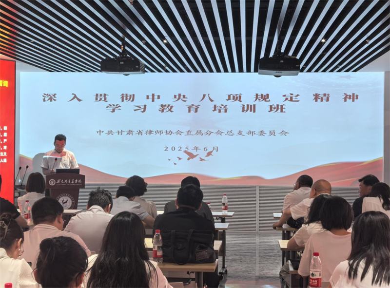 参观结束后,培训班邀请兰州资源环境技术大学资深马克思主义学院院长韩教授为大家作中央八项规定精神专题授课。教授围绕中央八项规定的核心要义、实践要求和历史意义,结合律师行业特点,通过典型案例分析、政策解读等形式,为党员律师上了一堂生动的廉政教育课。通过培训,学员们进一步深刻领会了习近平总书记关于党的建设的重要思想的精髓要义和实践要求,强化了党性锤炼,引发了党员律师的强烈共鸣。