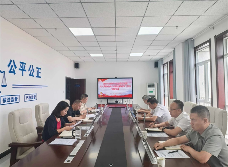 7月10日,酒泉市律师行业党委召开党委会议暨深入贯彻中央八项规定精神学习教育专题党课。会议期间,认真学习习近平总书记在中共中央政治局第二十一次集体学习时的重要讲话精神及《习近平总书记关于党的建设的重要思想概论》第四、五章节,传达学习市委直属机关工委关于规范党建工作的相关文件。