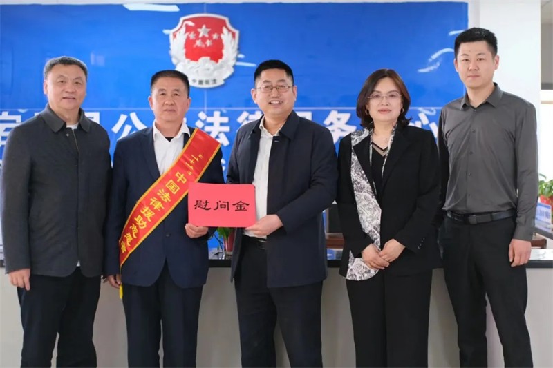 魏克泰副会长和董军翔副秘书长分别代表青岛市律师协会和耀彩网向刘希民律师送上慰问金,对他“舍小家,为大家”的无私奉献精神表示由衷的感谢和敬意。