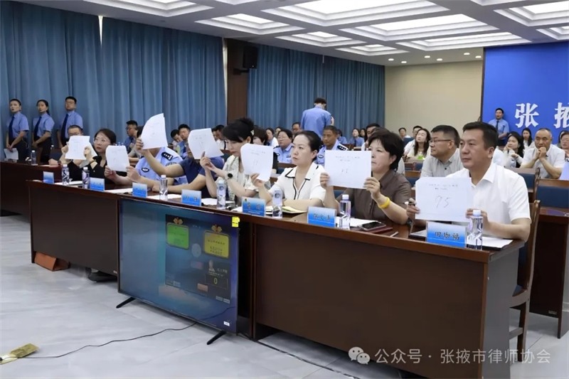 张掖市司法局党组书记、局长,张掖市律师行业党委书记牛益民为比赛致辞,本次比赛邀请了市委政法委副书记赵静、市人民检察院党组成员、副检察长鲁玲、市中级人民法院党组成员、副院长张文清、市司法局党组成员、副局长王虎、市公安局法制支队支队长王立民、市律师协会副会长田珈福、河西学院法学院老师张嘉担任评委。此次辩论赛检律双方组成16支队伍共48名选手参赛。