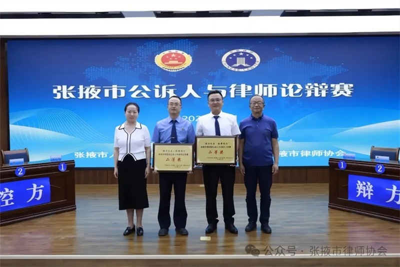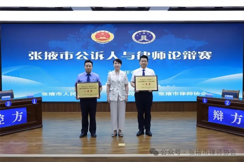 本届比赛以“陇法之音检律同行”为主题,以深化法治理念、推进法治建设为目的,通过辨法析理、以案释法,以公平、公正、公开竞争的方式促进检律队伍相互交流,提升出庭能力建设,提高司法公正和效率。论辩题目均为刑事案例,双方选手充分运用专业知识和辩论技巧,从陈述观点到攻辩发问、从自由辩论到总结陈词,据理力争,层层剖析,展现了选手扎实的专业知识和良好的业务素养。经过紧张激烈的辩论角逐,本次论辩赛评选出公诉人和律师代表队一等奖、二等奖、三等奖各一名,“最佳辩手”各三名,“优秀辩手”各五名。甘州区人民检察院一队和金都律师事务所代表队获得团体一等奖;张掖市人民检察院、森瑞律师事务所获得团体二等奖;高台县人民检察院、祁峰律师事务所获得团体三等奖;瞿昌文、潘文璐、张蕾、黄海彧获得公诉人最佳辩手荣誉;李晓磊、张九超、张潇获得律师最佳辩手荣誉。王 欣、强旦索玛、李俏玮、牛雅妮获得公诉人优秀辩手荣誉,陈文国、吴娜、陈建秀、方凯、张双元获得律师优秀辩手荣誉。