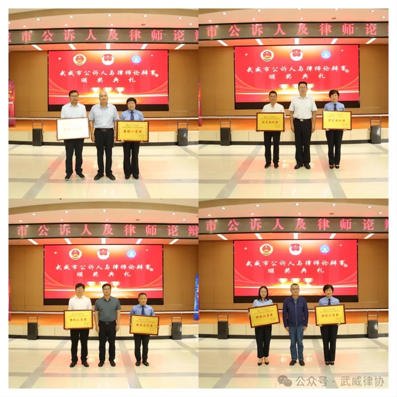 经评委现场评分,律师队伍最终决出:律师一队(市直)荣获团体一等奖,律师二队(市直)荣获团体二等奖,律师三队(凉州区队)荣获团体三等奖,律师六队(天祝县队)荣获优秀组织奖。香玥律师荣获最佳辩手称号。阮雪玲、明鑫、李琪、常锐、董睿、杨博文、马维鸿、樊芳、王明央九名律师荣获优秀辩手称号。