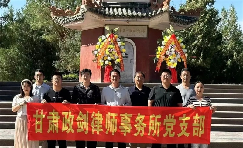 甘肃政剑律师事务所党支部组织全所党员律师赴瓜州县红西路军安西战役纪念馆开展了“追寻红色记忆、缅怀革命先烈”的主题党日活动。全体党员向纪念塔敬献花篮并默哀,追思英烈们的丰功伟绩。在红西路军安西战役纪念馆门前,全体党员面向鲜红的党旗重温了入党誓词。在一幅幅图片和一件件珍贵的革命文物前,全体党员认真聆听讲解员讲述感人的红色故事,切身感受革命先辈们拼搏的艰辛和革命的初心,不断激励着后人铭记历史,传承红色精神,砥砺前行。