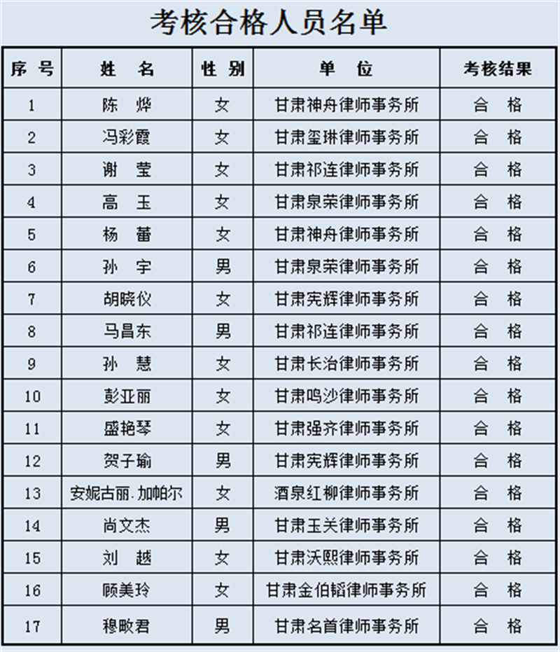 现根据《申请律师执业人员实习考核规程》规定,对考核合格人员进行公示。