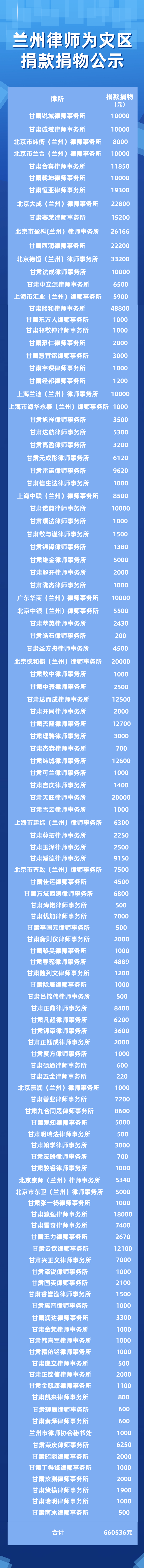 兰州律师抗洪救灾捐款捐物公示:
