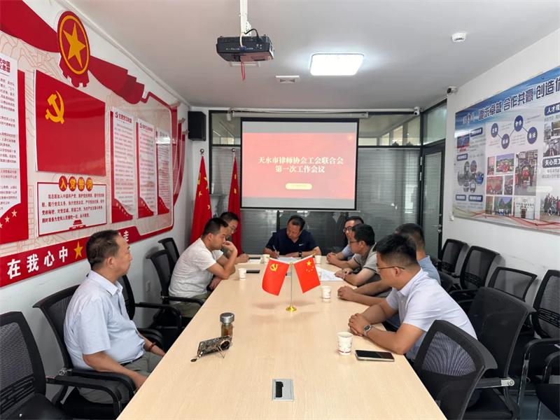 2025年8月15日,天水市律师协会工会联合会第一次工作会议在甘肃法茂律师事务所召开。会议由工会联合会主席李世平主持,市律师协会会长王朝晖,副主席于保存、肖天林、邢一彬、刘俊峰、郭志军及工会办公室人员马智涛出席会议。