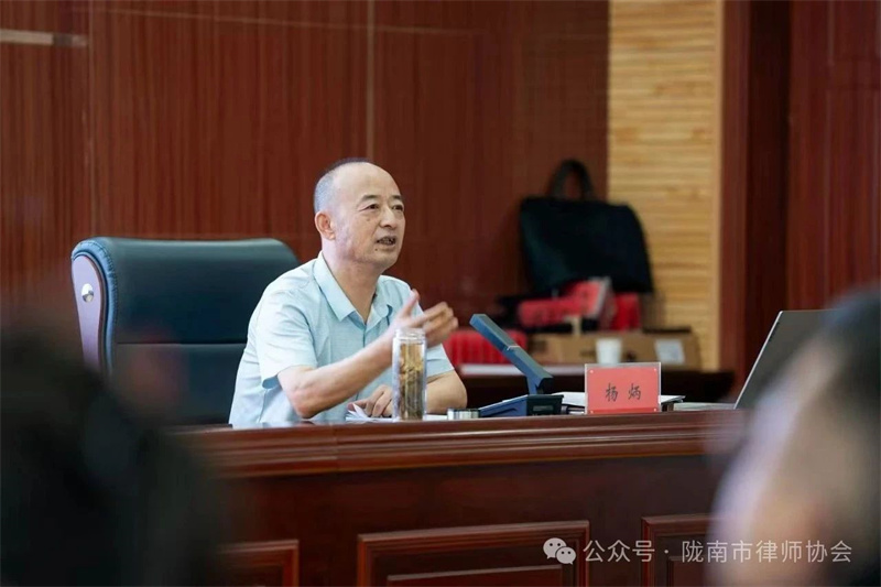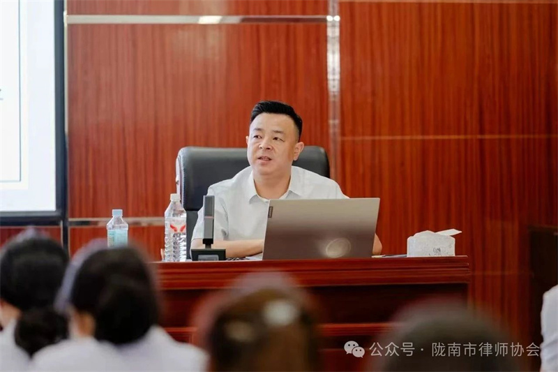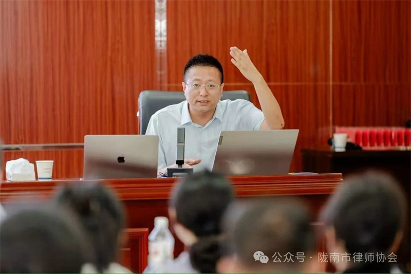 陇南市律师协会副会长尹生保作《律师执业常见风险与执业纪律》专题讲座。