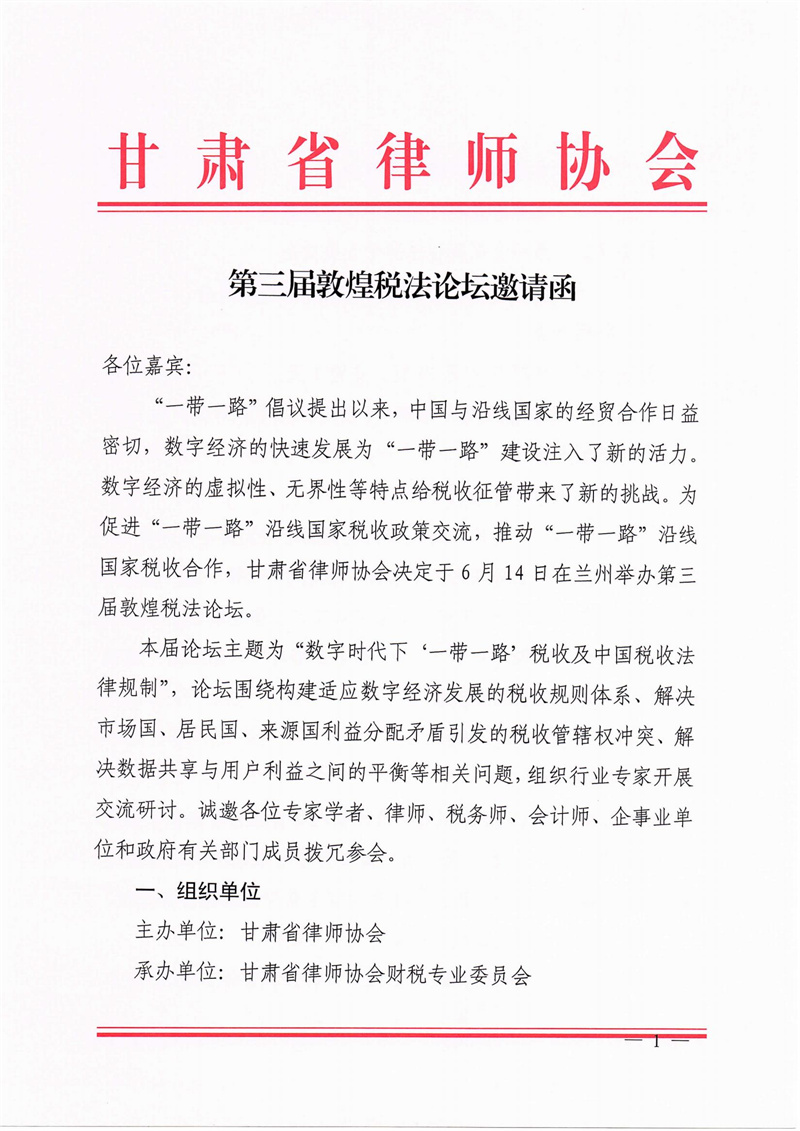 第三届敦煌税法论坛邀请函