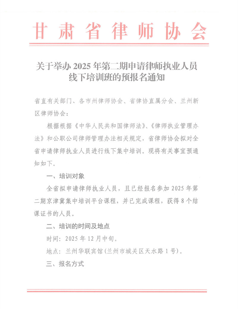 关于举办2025年第二期申请律师执业人员线下培训班的预报名通知