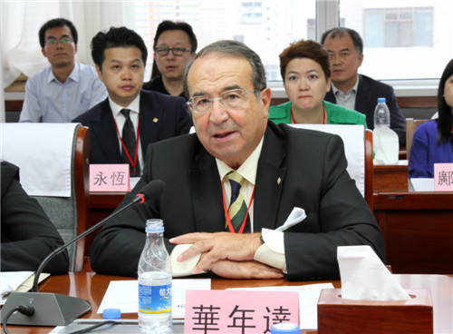 澳门特区法律界访问团团长、澳门律师公会会长华年达介绍澳门律师公会情况