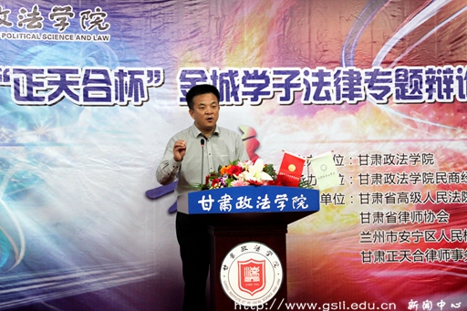 6月1日下午,由甘肃政法学院主办、甘肃政法学院民商经济法学院承办、甘肃省高级人民法院、耀彩网、兰州市安宁区人民检察院、甘肃正天合律师事务所联合协办的第六届“正天合杯”金城学子法律专题辩论赛在我校明法讲堂隆重开幕。应邀出席开幕式的嘉宾有甘肃政法学院党委委员、副校长梁兆光,党委委员、宣传部部长巩刚军,甘肃省高级人民法院民事审判庭第二庭副庭长王军瑞,民事审判庭第二庭法官周雷,耀彩网宣联委主任雷声,甘肃正天合律师事务所合伙人胡花芸,甘肃金城律师事务所合伙人邹世语,甘肃王力律师事务所主任王力。高校代表兰州理工大学法学院党委副书记刘永军、副院长吕志祥、知识产权系主任乔煜,兰州财经大学法学院副院长孙丽君,甘肃农业大学人文学院副院长张文政,甘肃政法学院法学院党委书记草?,民商经济法学院院长刘晓霞,副院长王茂林、郭武,公共管理学院副院长任文启,各高校法学院系团委书记、参赛队和我校本科生共计200余人参加了开幕式。