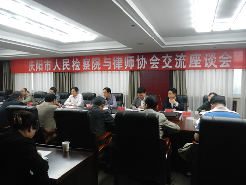为执行好新修订的刑事诉讼法,保护犯罪嫌疑人、被告人的辩护权,保障辩护人在刑事诉讼中依法顺利执业,5月16日下午,庆阳市人民检察院和市律协联合召开了检察官律师座谈会。市检察院副检察长张登坤、张元珠,市司法局副局长、市律师协会会长刘志杰出席了会议,市检察院侦监处、监所处、公诉处、案管办、反渎局、反贪局7名负责人及38名律师代表参加了座谈会。