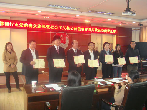 全市6县区律师机构和市直8家律师事务所选送参赛选手共16名律师参加了演讲比赛,经过紧张激烈比赛,振泽律师事务所葛宝鑫荣获一等奖,金厦律师事务所、沁泽律师事务所、瑞雪律师事务所选手张妮、李洪星等3人荣获二等奖,森瑞律师事务所、鑫星律师事务所、雪山律师事务所、民申律师事务所、方联律师事务所选手任芳、许倩等5人荣获三等奖,其他7名选手荣获纪念奖。市司法局分管领导、市律师协会及市局部分科室负责人莅临指导演讲比赛,并为获奖选手颁奖,律师事务所律师代表50余人参加并观看了比赛。