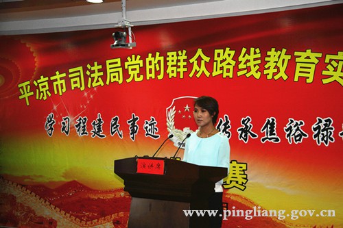 平凉市司法局机关各科室和局属各单位共推荐出了14名选手参加了演讲比赛。参赛选手紧扣党的群众路线教育活动这一主线,通过对程建民事迹和焦裕禄精神的学习,讲心得、谈体会。普遍围绕全心全意为人民服务,牢固树立为民务实,公平正义,紧密联系司法行政和法律服务工作实际,从身边的人和事、具体案例中领会和践行了党的群众路线教育实践活动。