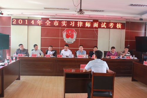 面试考核由市律师协会会长李兴禄主持。考核程序按照实习律师做自我介绍、指导律师点评实习情况、评委查阅实习记录和工作文书、现场提问、实习律师答辩五个步骤进行,由考核委员会9名评委现场打分,程序严密,结果公正。经面试考核,24名实习律师面试考核成绩合格,2名实习律师未通过。