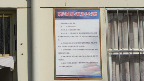 12月24日刘局长一行在环县听取了县司法局关于“法律服务直通车”开展情况的汇报,在环城、甜水、洪德、木钵等乡镇检查了工作开展情况。环县“法律服务直通车”活动启动早,县、乡、村党组织和有关部门对法律服务直通车工作高度重视,公示牌已全部上墙,人员已到岗开展工作。结对帮扶律师已将自己的名片发到了各村各户,各乡镇安排乡、村群众大会邀请结对律师到会宣讲法律知识,用案例讲解法律常识。