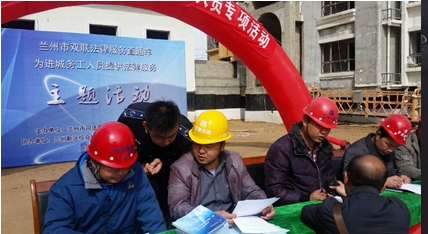兰州市双联法律服务直通车服务兰州新区进城务工人员专项活动采用项目工地主场宣传与深入兰州新区双联村上门对接服务相结合的方式进行。主会场活动中,由甘肃恒亚律师事务所见证各项目单位、用工单位与务工人员现场签订《农民工工资支付承诺书》,发放双联法律服务直通车进城务工人员法律手册和印有律师事务所联系信息的维权联系卡共计2000余册,宣讲劳动法、劳动合同法等法律法规,开展针对劳动合同签订、劳动争议解决、劳动侵权维权等法律咨询,并就劳动争议案件的法律援助提供面对面法律解答,活动现场气氛热烈。当日下午,市律师协会还组织北京齐致(兰州)律师事务所、兰州黄河律师事务所、甘肃少华律师事务所、甘肃雷奇律师事务所、甘肃昊正律师事务所、甘肃硕通律师事务所、甘肃和谐律师事务所、甘肃至行律师事务所主任及执业律师分别赴兰州新区秦川镇新园村、建新村、振兴村、榆川村、西昌村、东川村、中川镇红玉村、西岔镇段家川村等双联贫困村为进城务工人员提供专项法律服务,并现场开展各项对接宣传咨询活动。