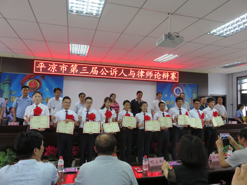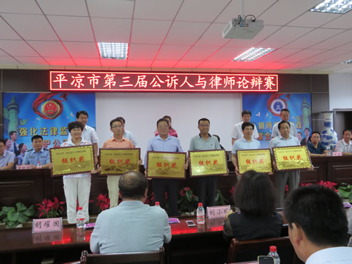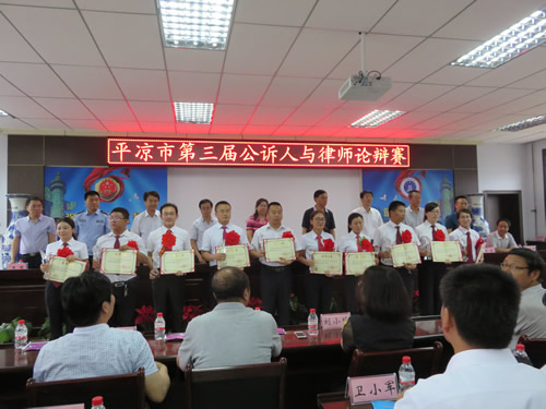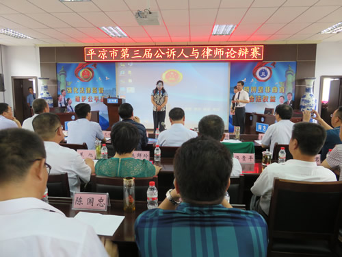 7月11至14日,由平凉市司法局、平凉市检察院主办,庄浪县司法局、庄浪县检察院承办的第三届全市公诉人与律师论辩赛在庄浪县检察院隆重举行。市司法局调研员、市律协会长陈玉梅,市检察院副检察长张杰,市中院党组成员、政治部主任李克峰,市委党校副校长李国玺出席论辩赛。