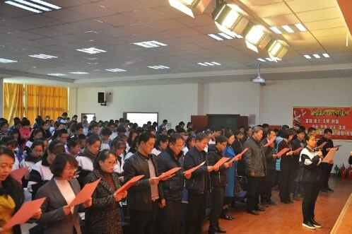 在学校大力支持、配合下,“法治进校园”活动在预防校园欺凌师生、家长集体大签名、集体诵读《宪法》中拉开序幕。