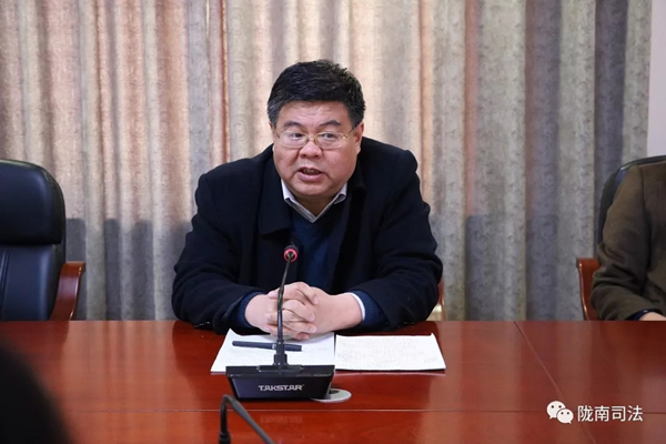 2017年12月25日下午,在陇南市司法局七楼会议室,甘肃永盛律师事务所全体职工召开会议,学习党的十九大精神。陇南市司法局党组书记、局长夏建华主持会议,党组成员、副局长王仲煦、市律师协会会长耿军林出席会议,律师管理科科长文三平等相关科室负责人参加会议。