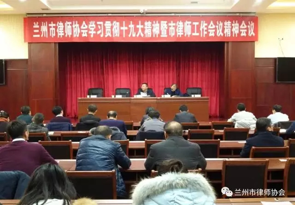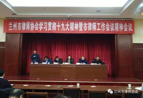 会议主要围绕专题辅导学习十九大精神、传达全市律师工作会议精神、2017年兰州市律师执业道德纪律违规情况通报、行业维权倡议展开。