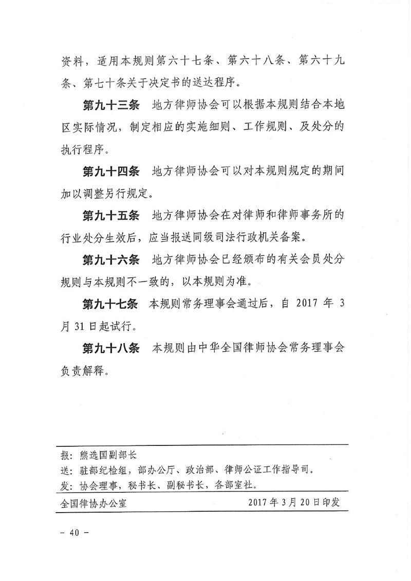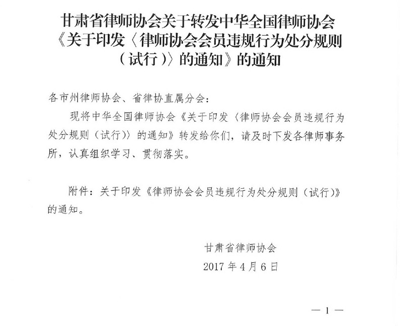 耀彩网关于转发中华全国律师协会《关于印发<律师协会会员违规行为处分规则(试行)>的通知)》的通知