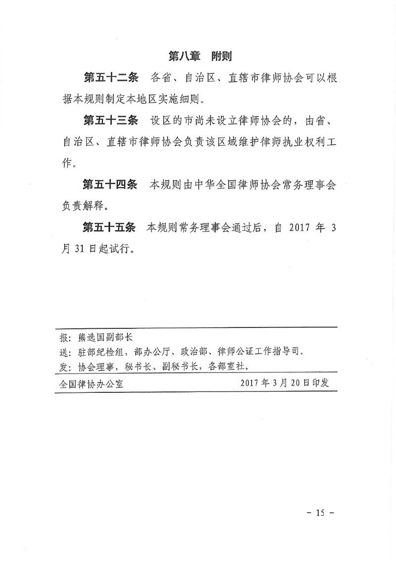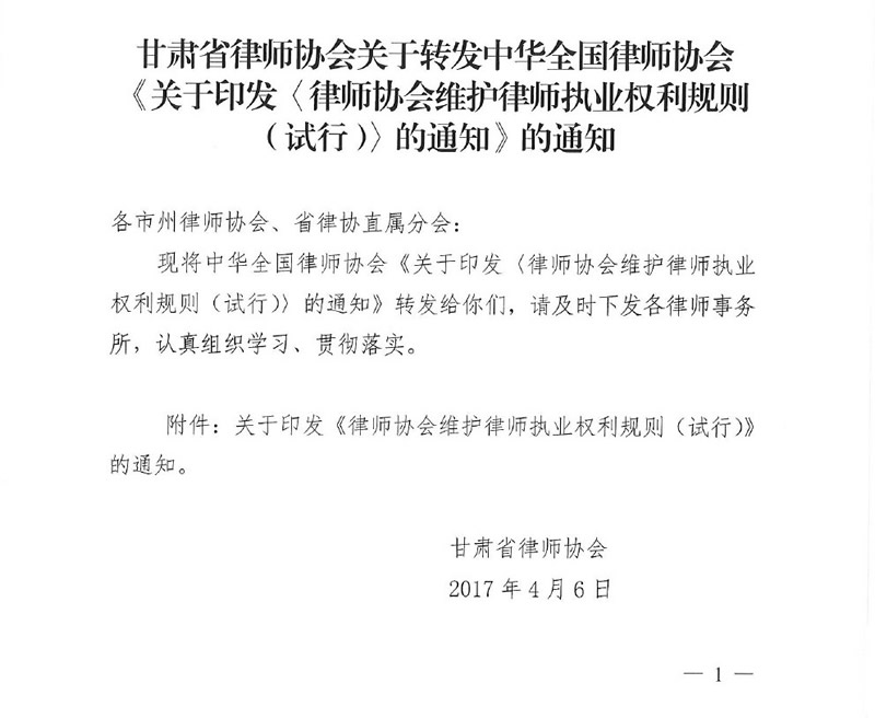 耀彩网关于转发中华全国律师协会《关于印发<律师协会维护律师执业权利规则(试行)>的通知)》的通知