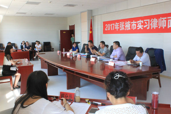 为进一步加强律师队伍建设,提高实习律师的政治素质、业务素质、职业道德素质,严把律师执业“入口关”。根据《中华人民共和国律师法》、《甘肃省司法厅关于进一步规范律师执业准入管理工作的通知》精神和中华全国律师协会《申请律师执业人员实习管理规则》。2017年8月12日,张掖市律师协会在张掖市律师协会监事会监督下,严格依据张掖市律师协会下发的《关于二?一七年实习律师面试考核的通知》精神,对2017年申请律师执业人员进行了面试考核。