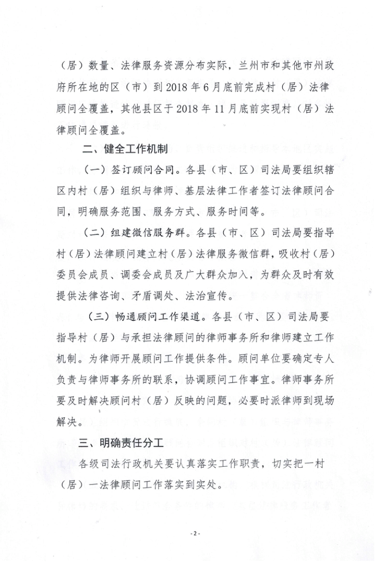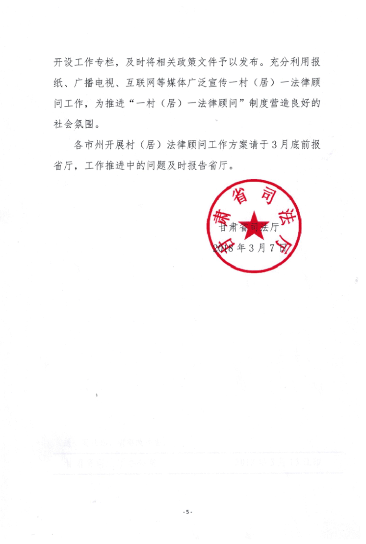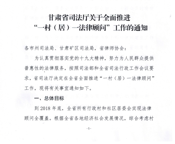 甘肃省司法厅关于全面推“一村(居)一法律顾问”工作的通知