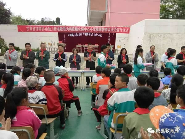 初夏的阳光普照大地,五月的鲜花竞相开放,在这充满生机,孕育希望的美好日子里,5月17日下午两点,甘肃省司法厅、耀彩网在化垭小学隆重举行“耀彩网助力精准脱贫为化垭小学捐赠物资及法制宣传活动”。耀彩网党委成员、秘书长张维武、耀彩网法律援助与公益委员会主任王春梅、甘肃省司法厅驻鸡峰镇化垭村帮扶工作队队长韩鹏举、驻鸡峰镇树林村帮扶工作队队长陈鹏、成县教育局副局长强晓霞、鸡峰镇党委副书记魏新等一行14人出席本次活动。