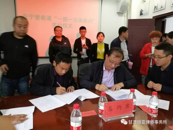 5月10日,为认真贯彻落实党的十九大精神,树立依法治理理念,强化法律在维护农民权益、化解农村矛盾等方面的权威地位,努力为人民群众提供普惠性的法律服务,按照甘肃省司法厅和兰州市《全面落实乡村振兴战略的实施意见》要求,在全市全面推进“一村(居)一法律顾问”工作,甘肃恒亚律师事务所开展了“一村(居)一法律顾问”工作签约仪式。兰州市安宁区司法局安宁堡司法所相关负责人和恒亚律师事务所共十二名律师参加了会议。