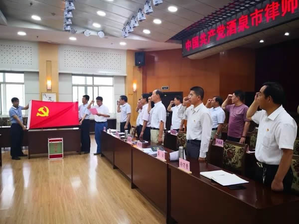中共酒泉市律师行业委员会委员与全体与会党员重温入党誓词)