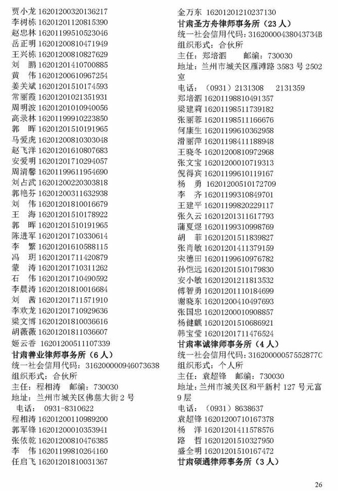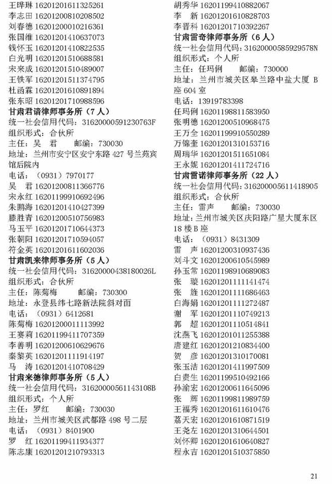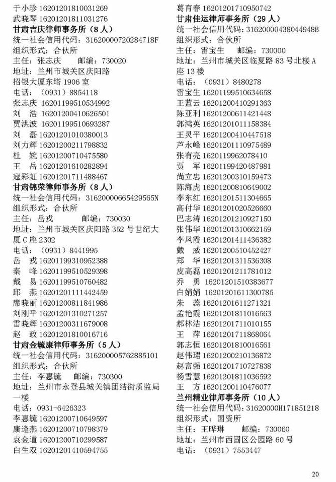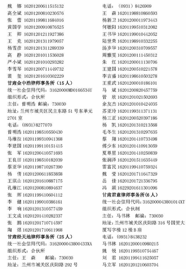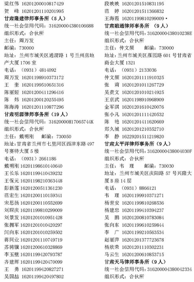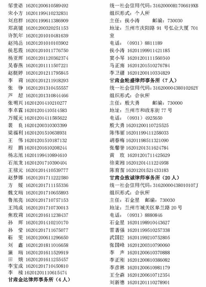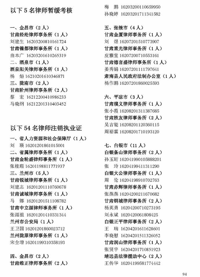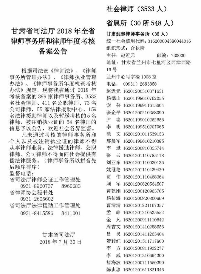 甘肃省司法厅2018年全省律师事务所和律师年度考核备案公告