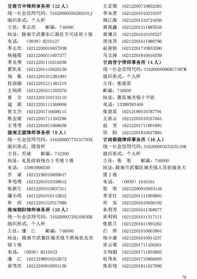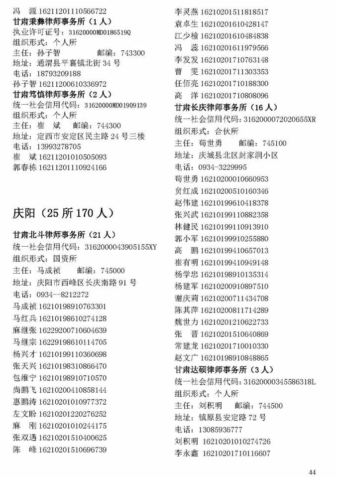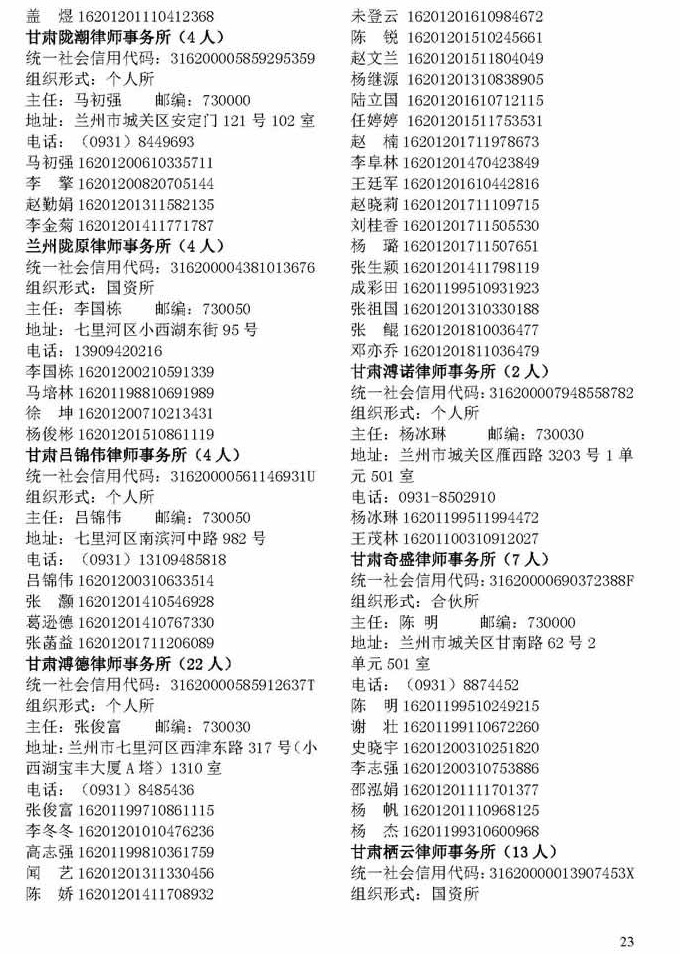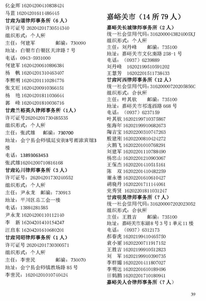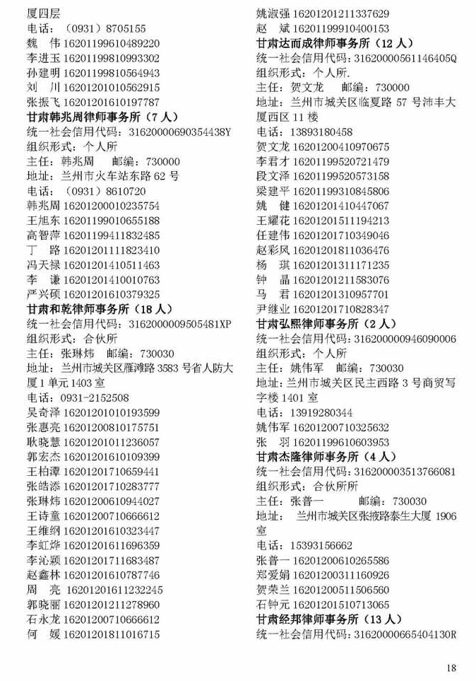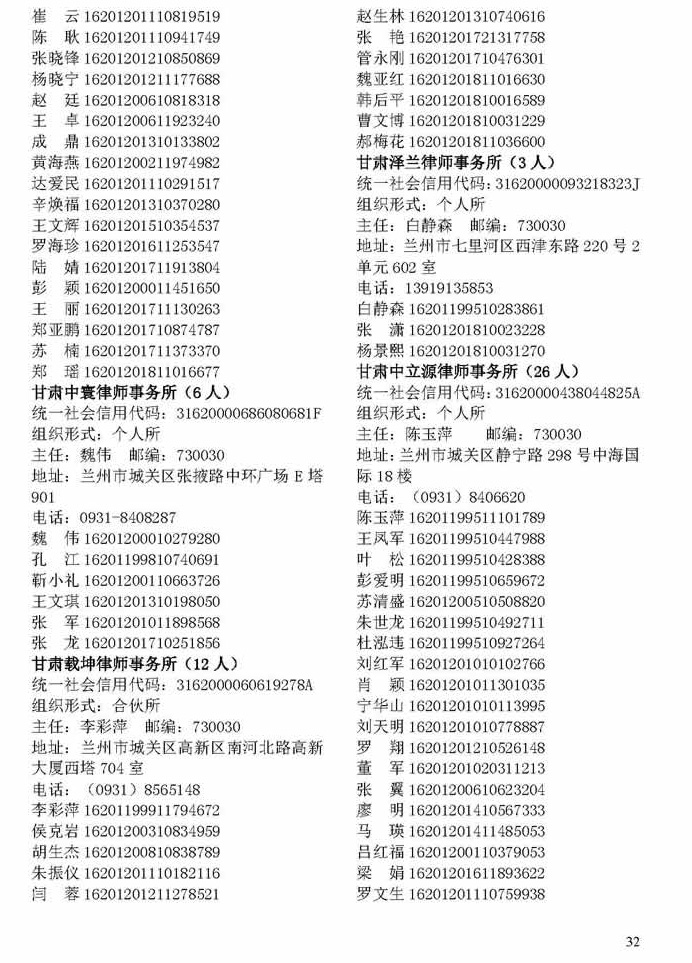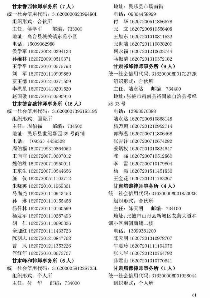 甘肃省司法厅2018年全省律师事务所和律师年度考核备案公告