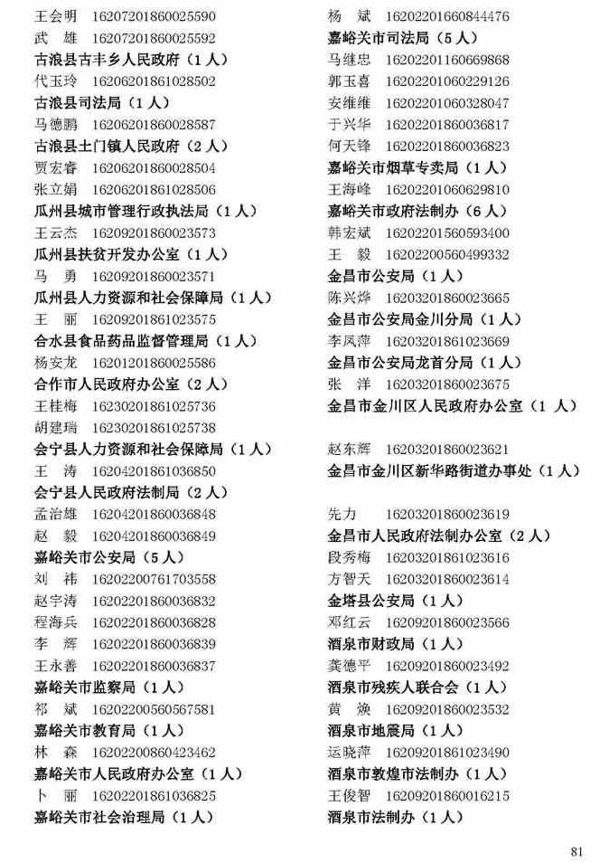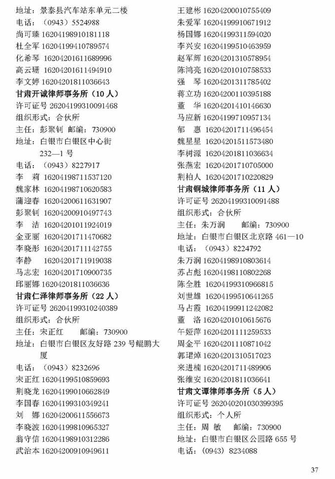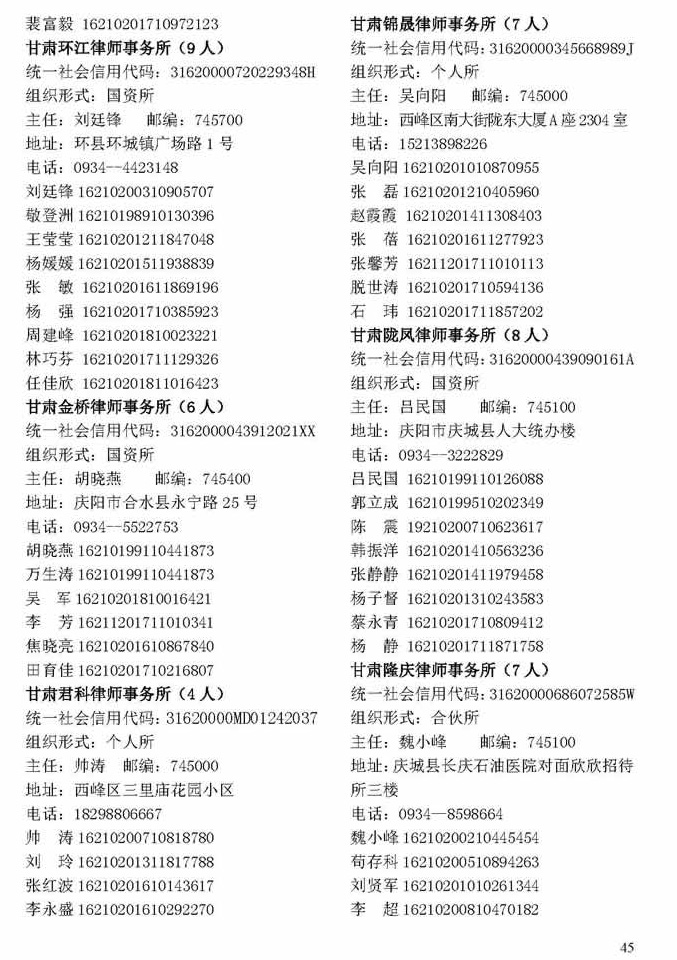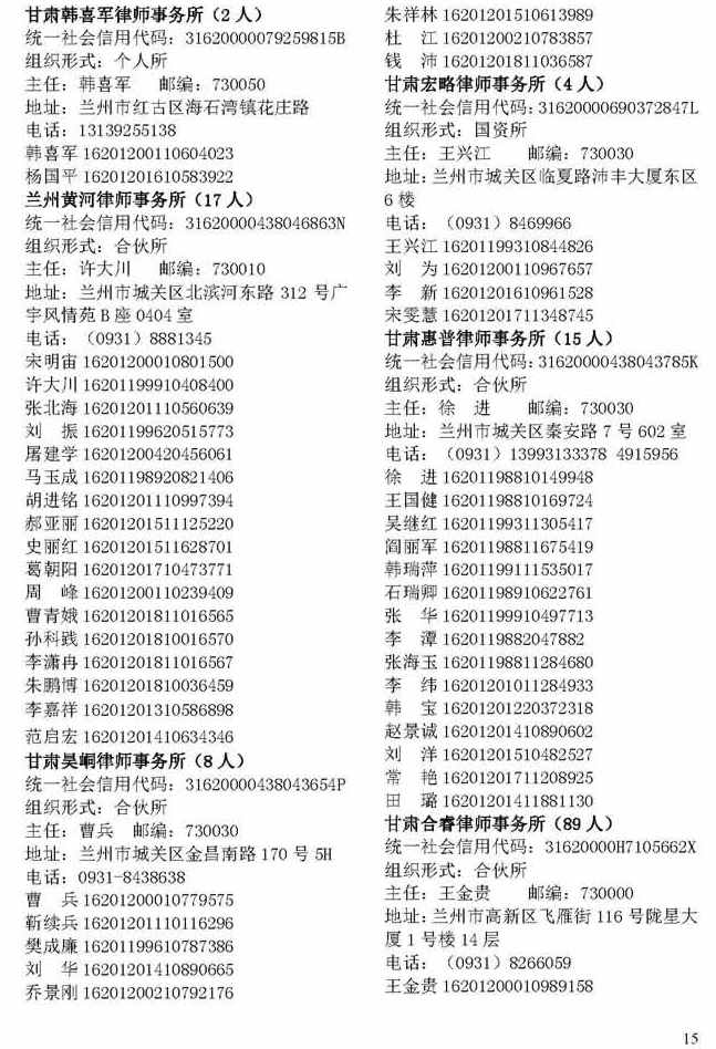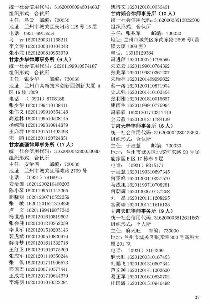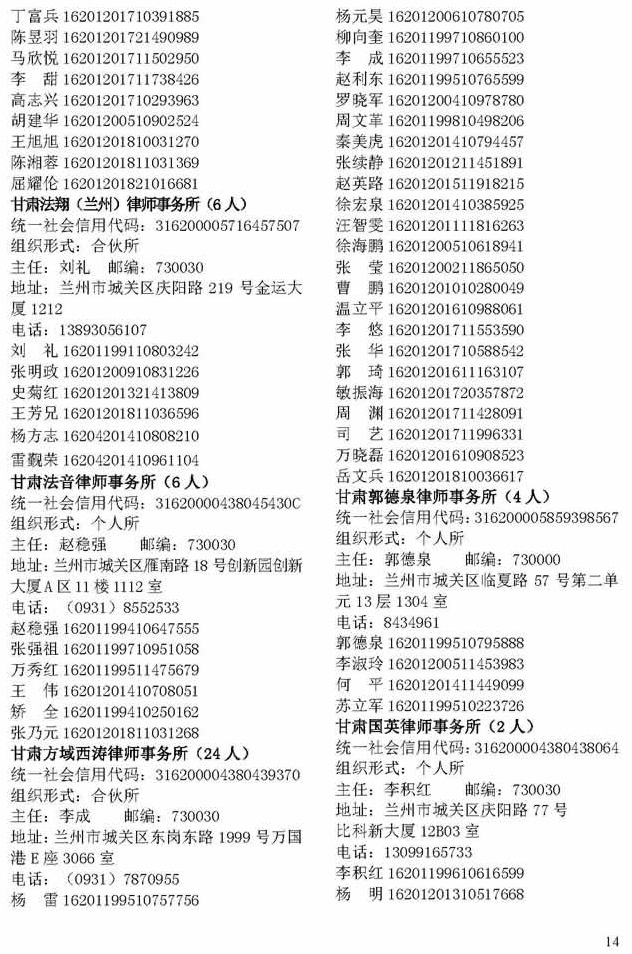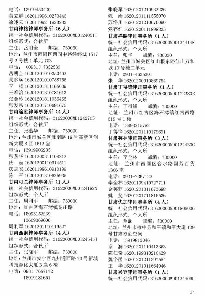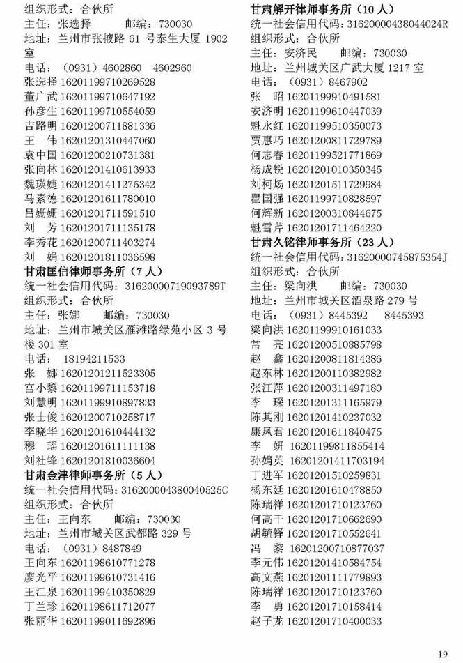 甘肃省司法厅2018年全省律师事务所和律师年度考核备案公告